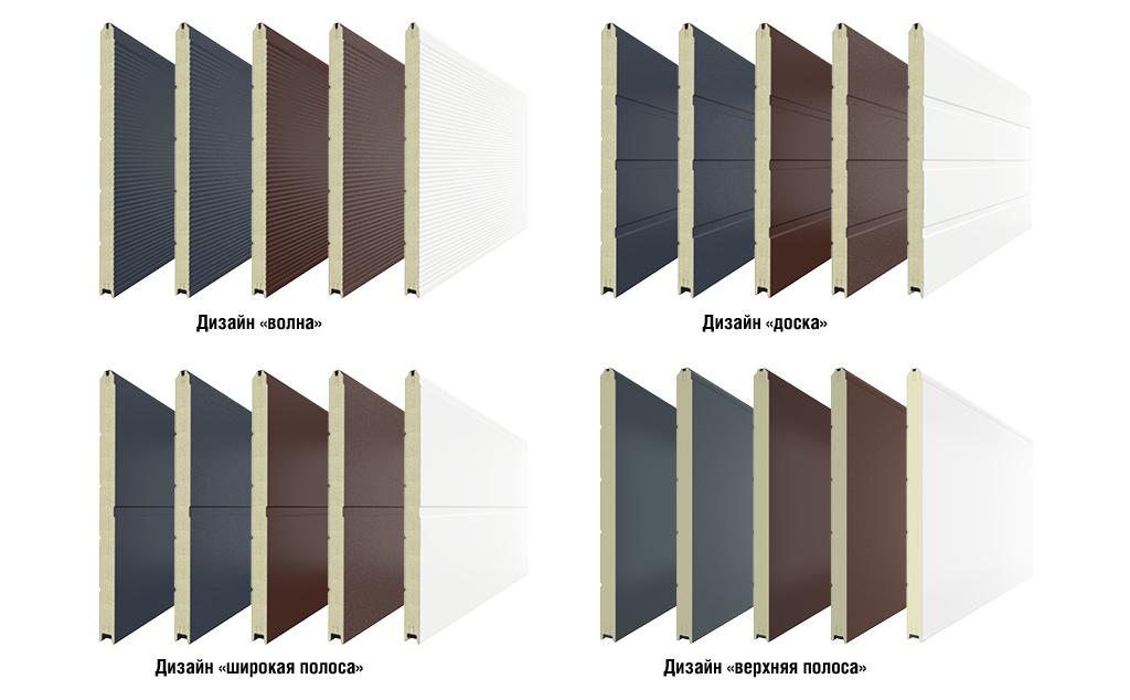Новинка представлена в пяти цветовых решениях самых популярных дизайнов: «доска», «широкая центральная полоса», «волна» и «верхняя полоса». Изменился и конструктив панели — для придания гладкой текстуре большей жесткости используется лист металла толщиной 0,5 мм в отличие от панелей с текстурой «стукко» или «под дерево».