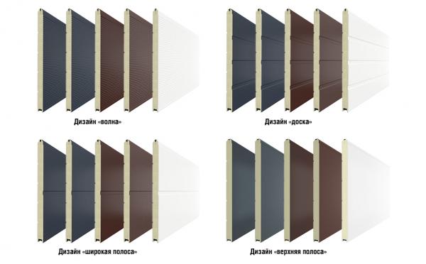 Новинка представлена в пяти цветовых решениях самых популярных дизайнов: «доска», «широкая центральная полоса», «волна» и «верхняя полоса». Изменился и конструктив панели — для придания гладкой текстуре большей жесткости используется лист металла толщиной 0,5